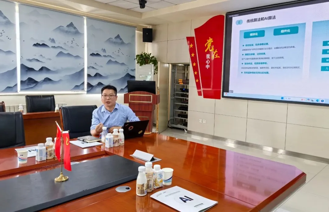 4月11日,科億科技行業總監盧文飛、楊大海一行,在天津蒙牛乳業,與蒙牛乳業采供、品保、設備、質量、運營等部門相關人員、供應商代表-杭州中亞瑞程就乳品行業各工藝流程AI視覺檢測技術應用及特殊產品的AI視覺檢測難點等展開技術交流。會議采用線下+線上的交流方式,參會人數達160+。